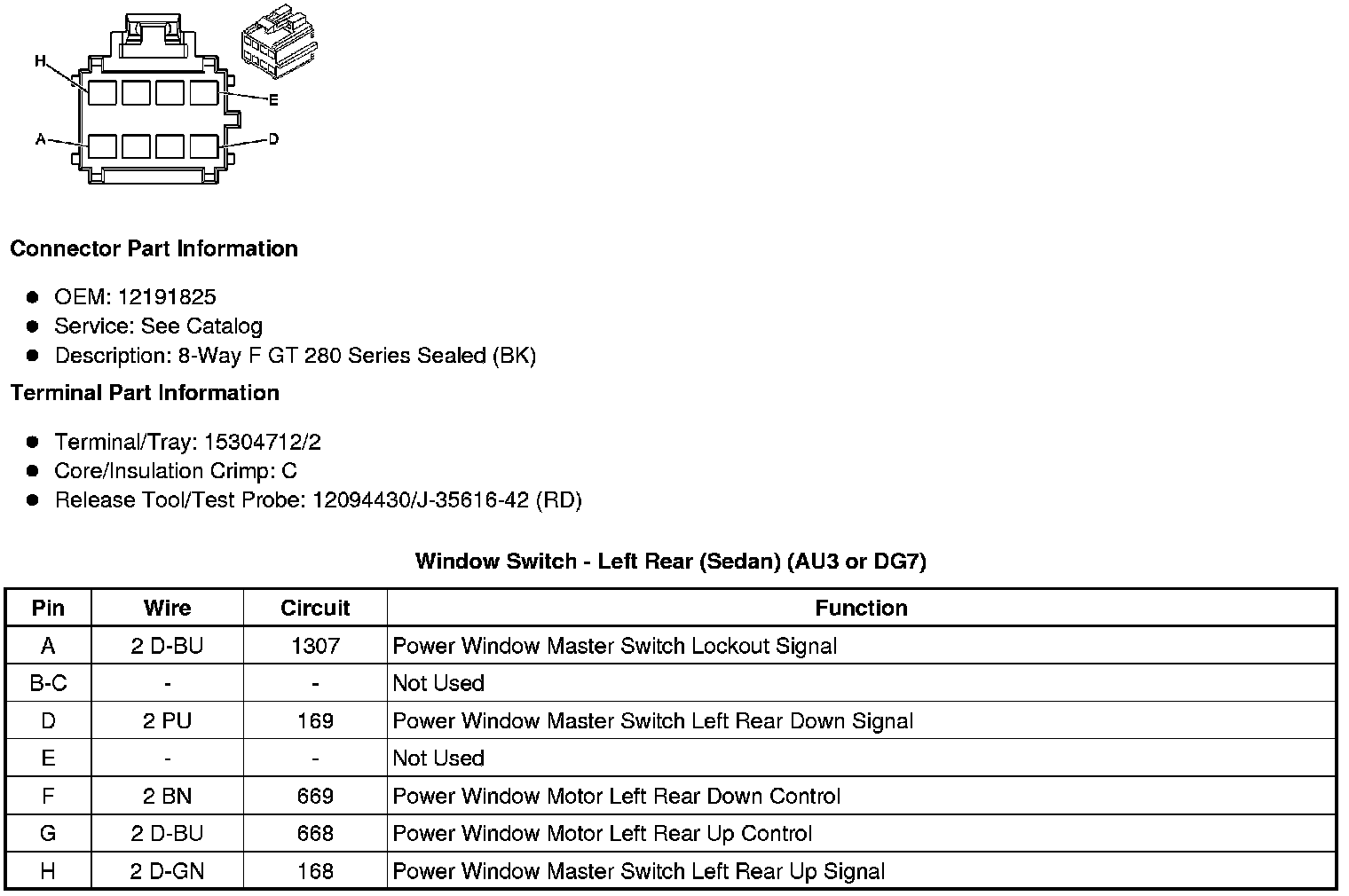 Window Switch - Left Rear (Sedan) (AU3 or DG7)