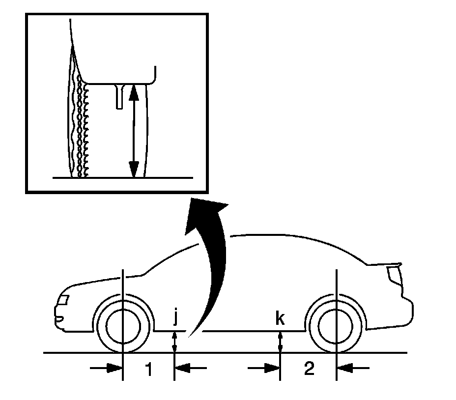 2. Compare the measurement to the J specification. Refer to Trim Height Specifications (Trim Height Specifications).