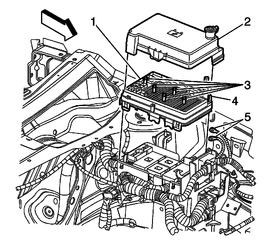 4. Disconnect the positive battery cables (5) from the underhood electrical center.