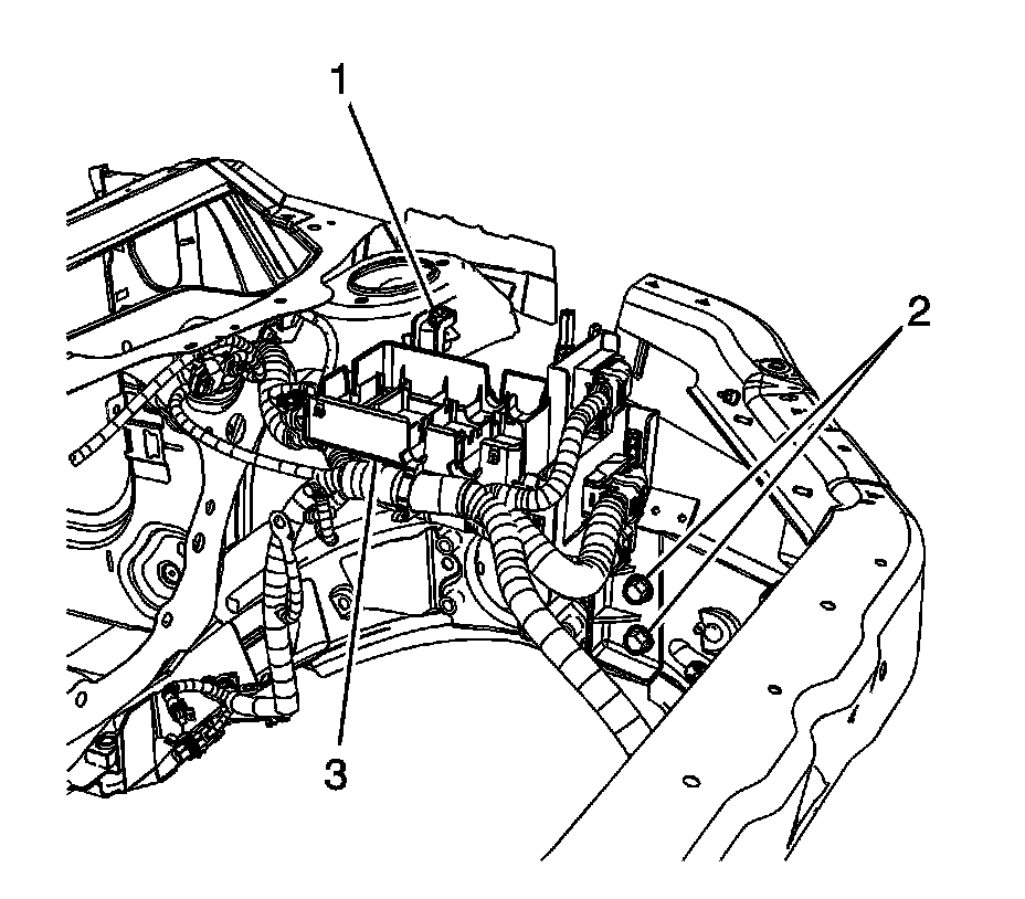 Note: The underhood electrical center bolts (3) are retained in the electrical center.