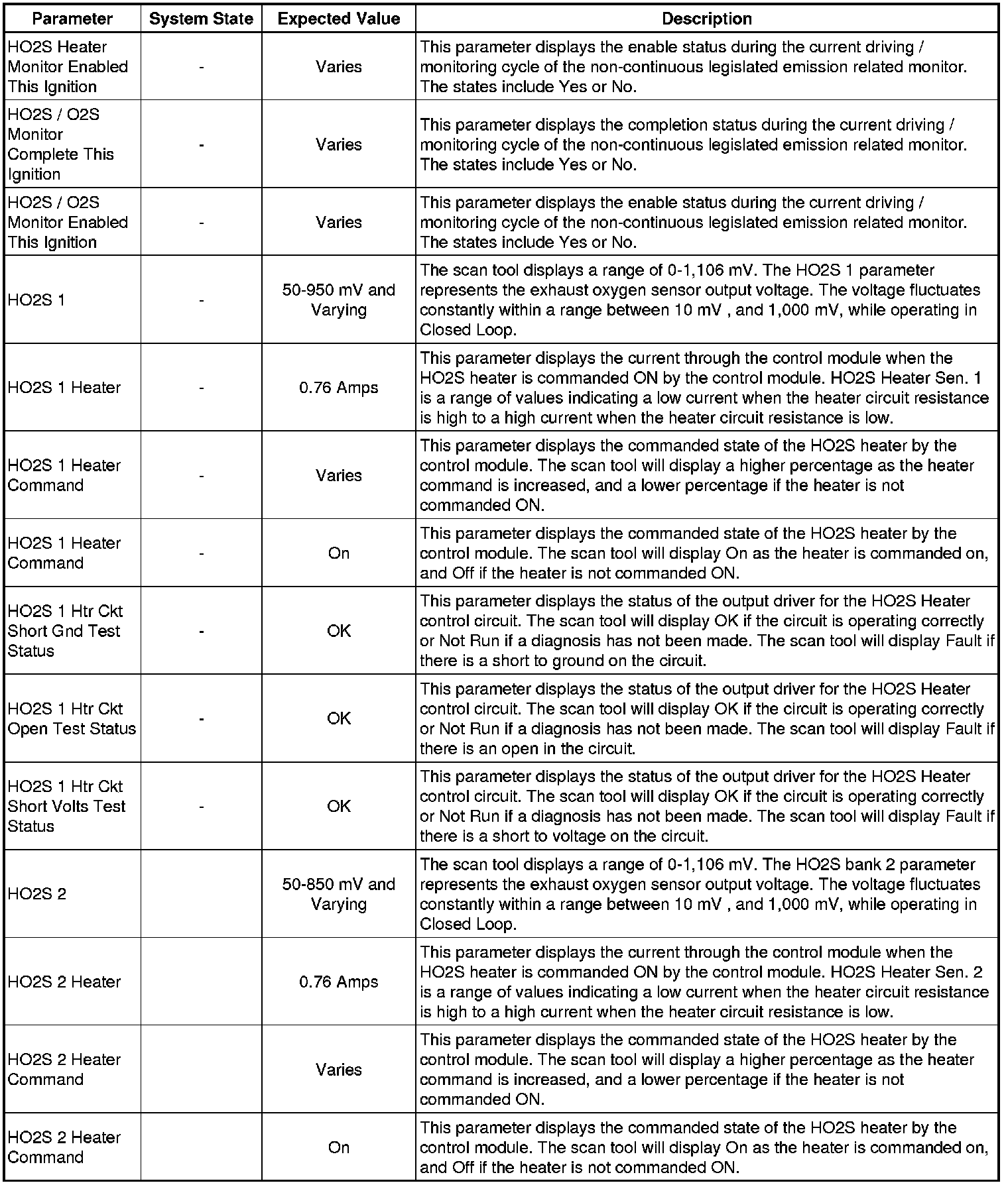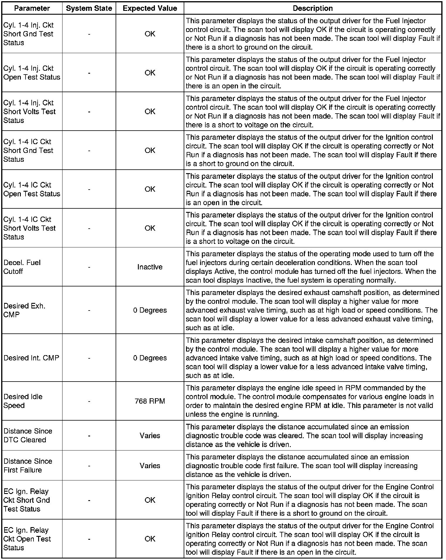 Only the parameters listed below are referenced in this service manual for use in diagnosis. If all values are within the typical range described below, refer to Symptoms - Engine Controls (- Symptoms - Engine Controls) for the 2.4L engine for diagnosis.