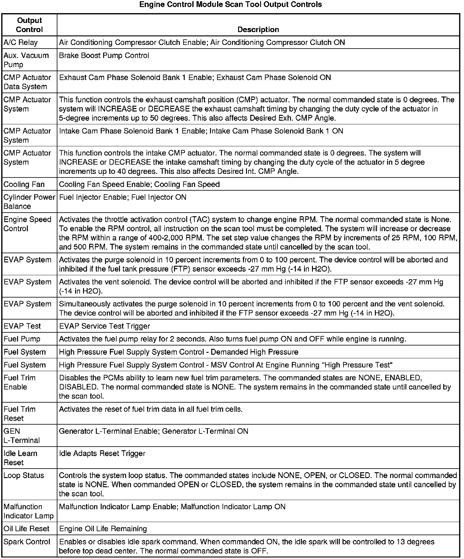 The Engine Control Module Scan Tool Data List contains all engine-related parameters that are available on the scan tool. The list is arranged in alphabetical order. A given parameter may appear in any one of the data lists, and in some cases may appear more than once, or in more than one data list in order to group certain related parameters together.