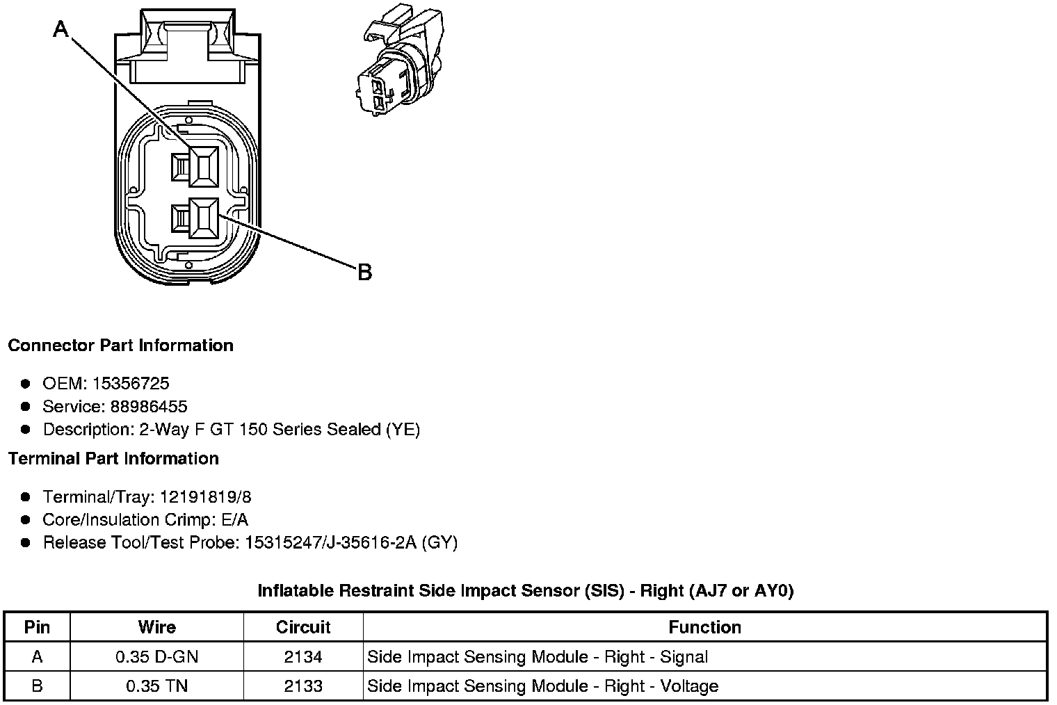 Inflatable Restraint Side Impact Sensor (SIS) - Right (AJ7 or AY0)