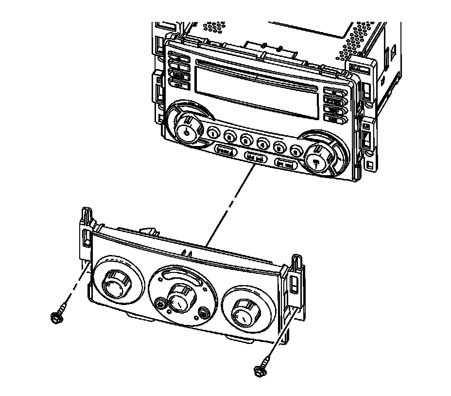 1. Remove the instrument panel (I/P) center trim panel. Refer to Instrument Panel Center Trim Panel Replacement (Service and Repair).