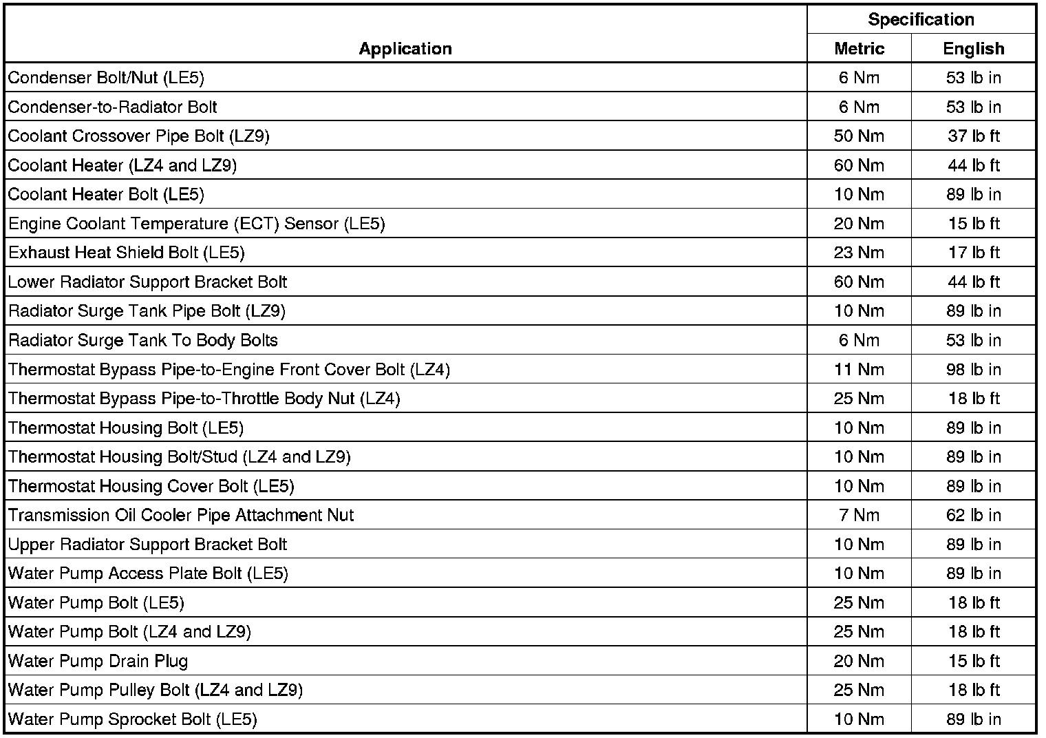 Fastener Tightening Specifications
