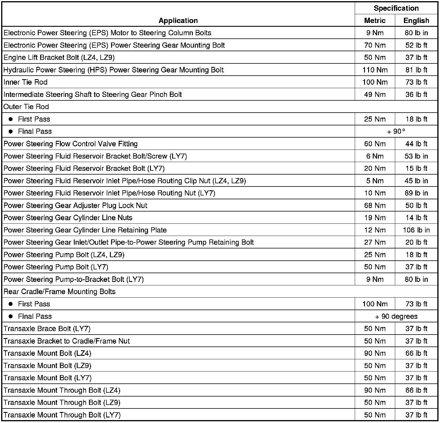 Fastener Tightening Specifications