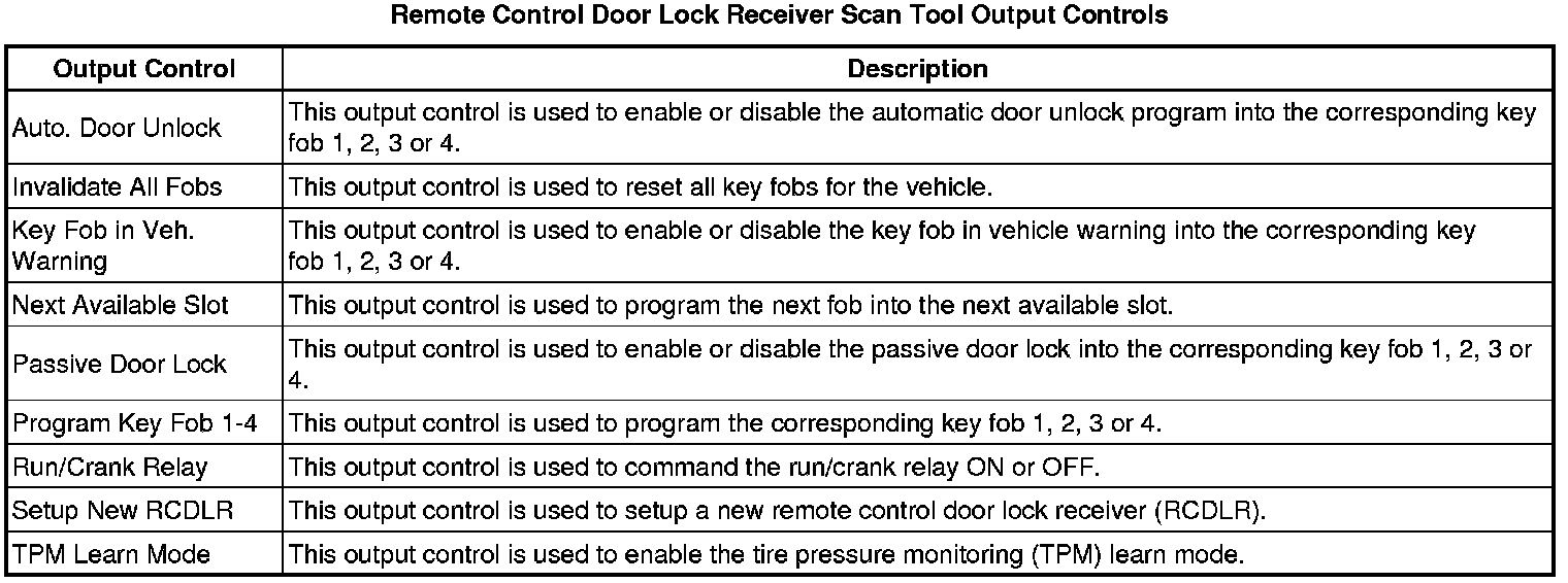 Remote Control Door Lock Receiver Scan Tool Information