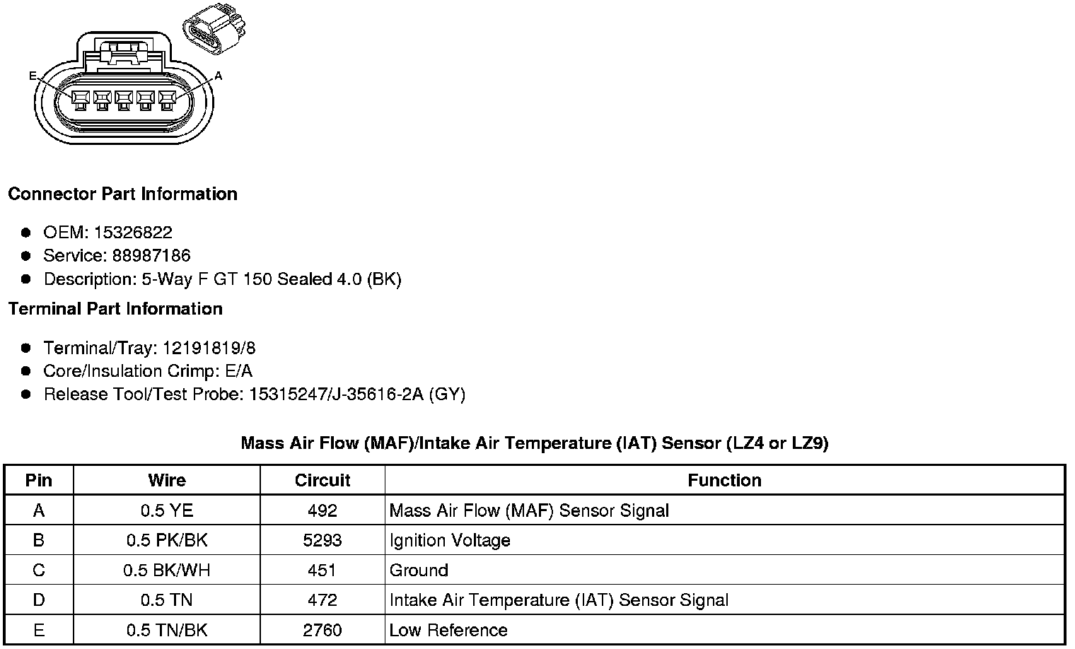 Mass Air Flow (MAF)/Intake Air Temperature (IAT) Sensor (LZ4 or LZ9)