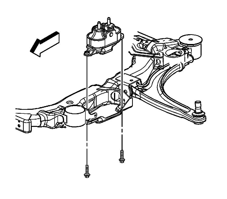 12. Remove the front transmission mount bolt from the frame. Refer to Transmission Front Mount Replacement (Transmission Front Mount Replacement).