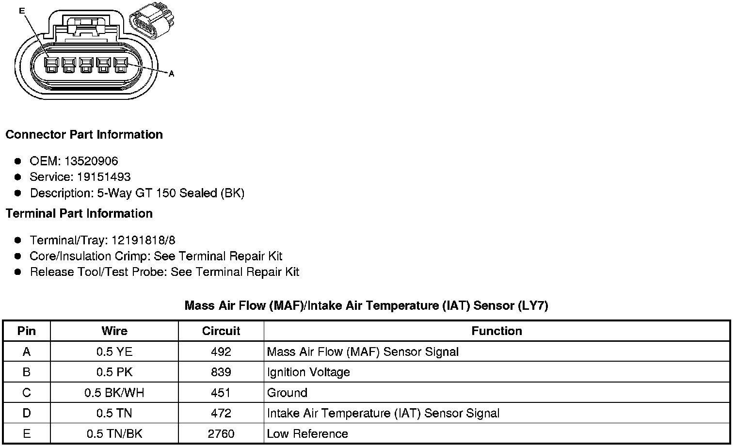 Mass Air Flow (MAF)/Intake Air Temperature (IAT) Sensor (LY7)