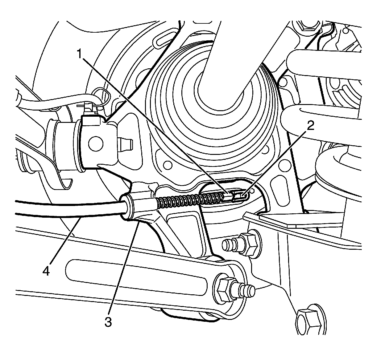 12.Remove the outer cable (4) from the rear knuckle (3).