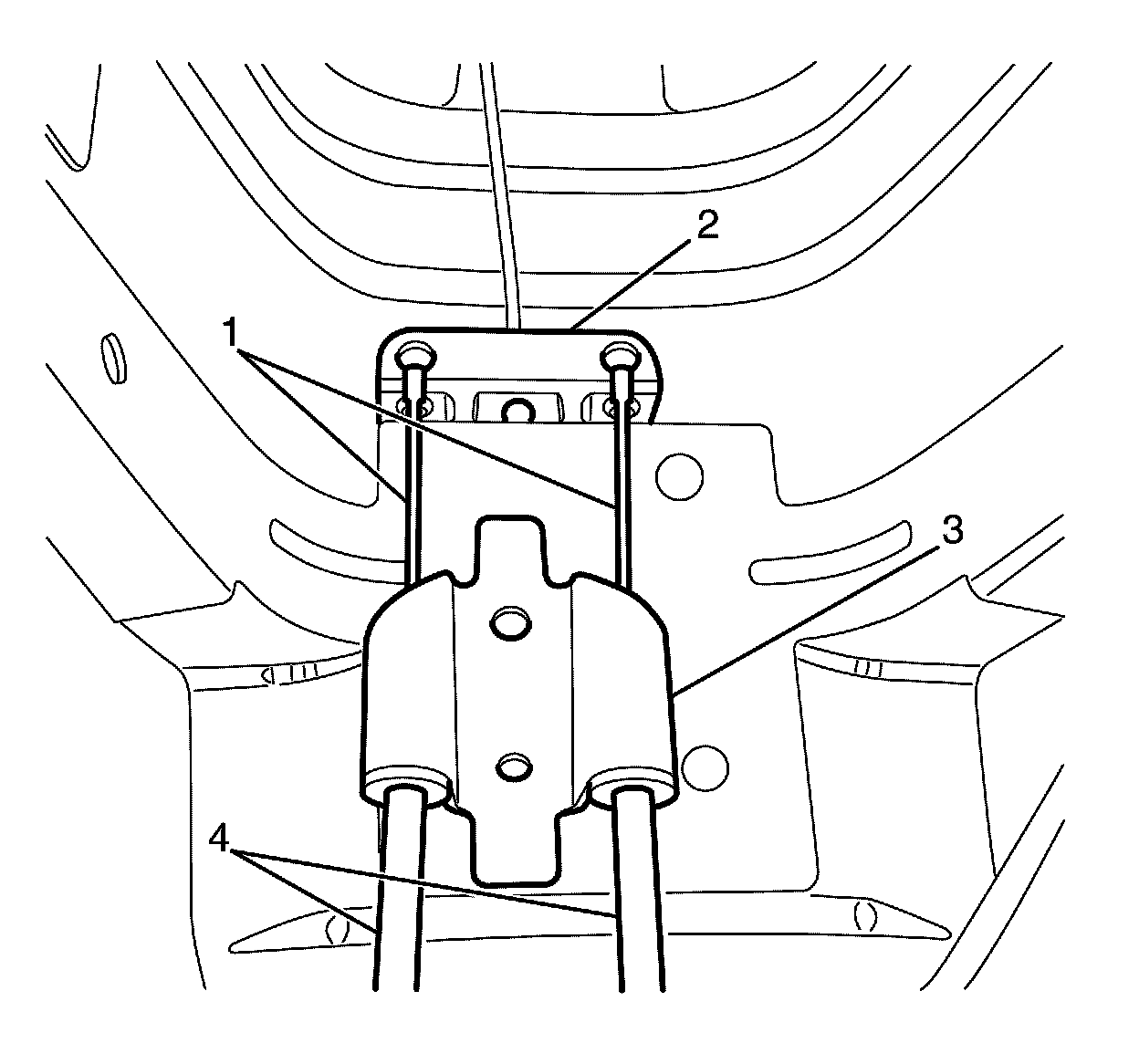 Make sure that the outer cables (4) are properly seated in the vehicle underbody bracket (3).