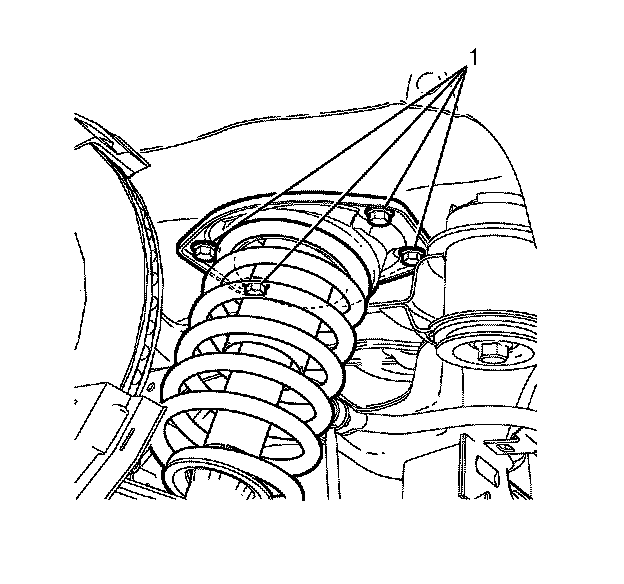 9.Remove the top strut assembly to body retaining bolts (1).