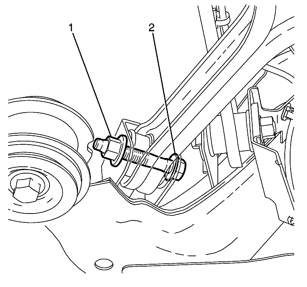 8.Install the Y-Link to knuckle retaining bolt (1) and NEW nut (2).