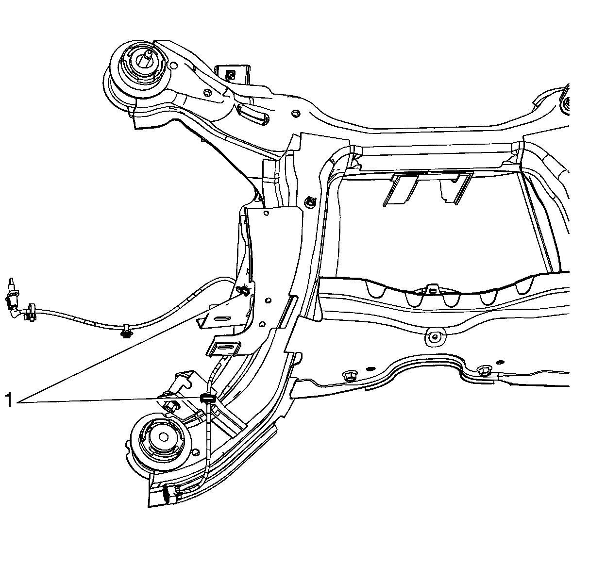 1.Connect the rear frame wiring harness to rear subframe side retaining clips (1).