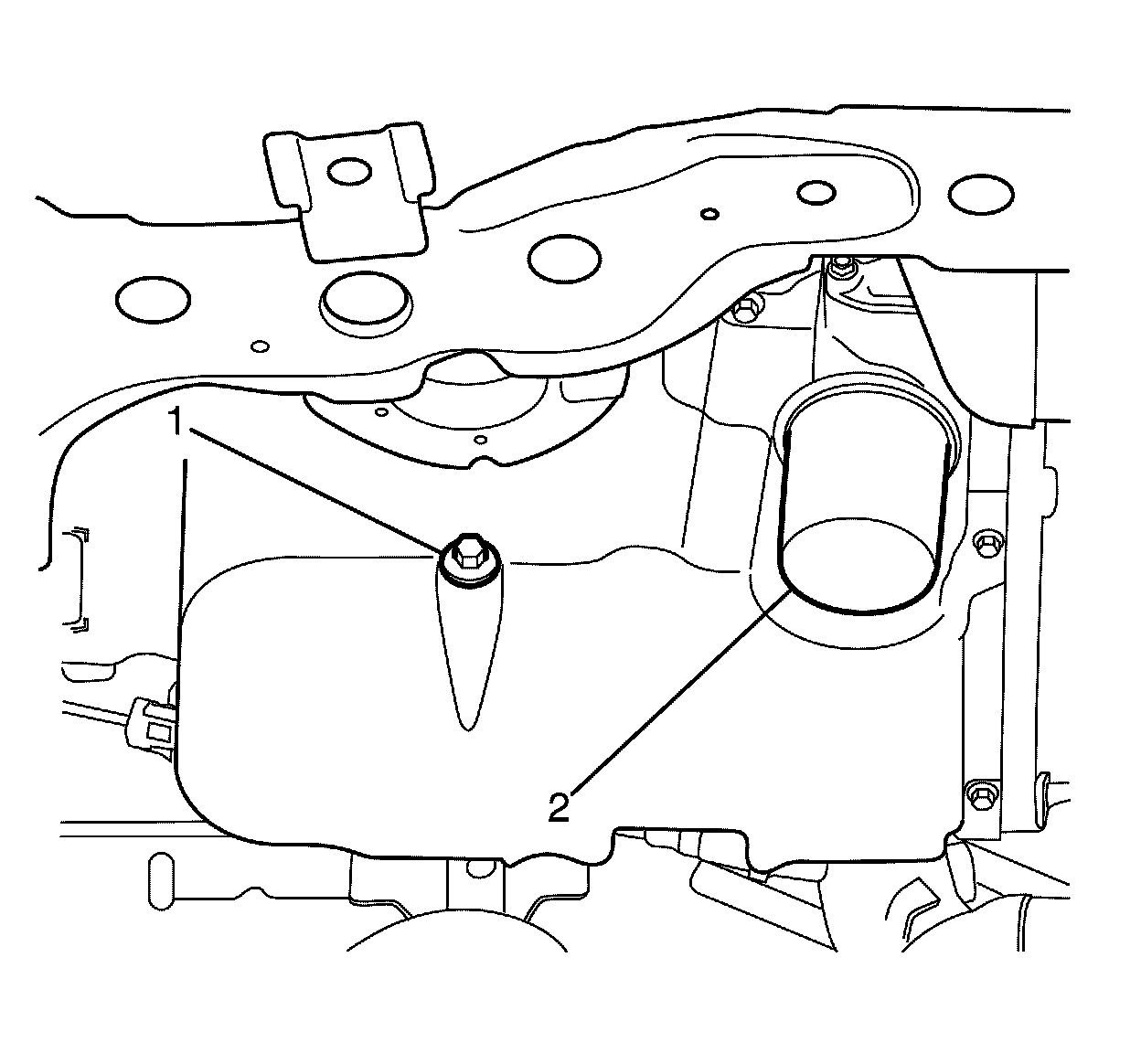3. Remove the oil pan drain plug (1).