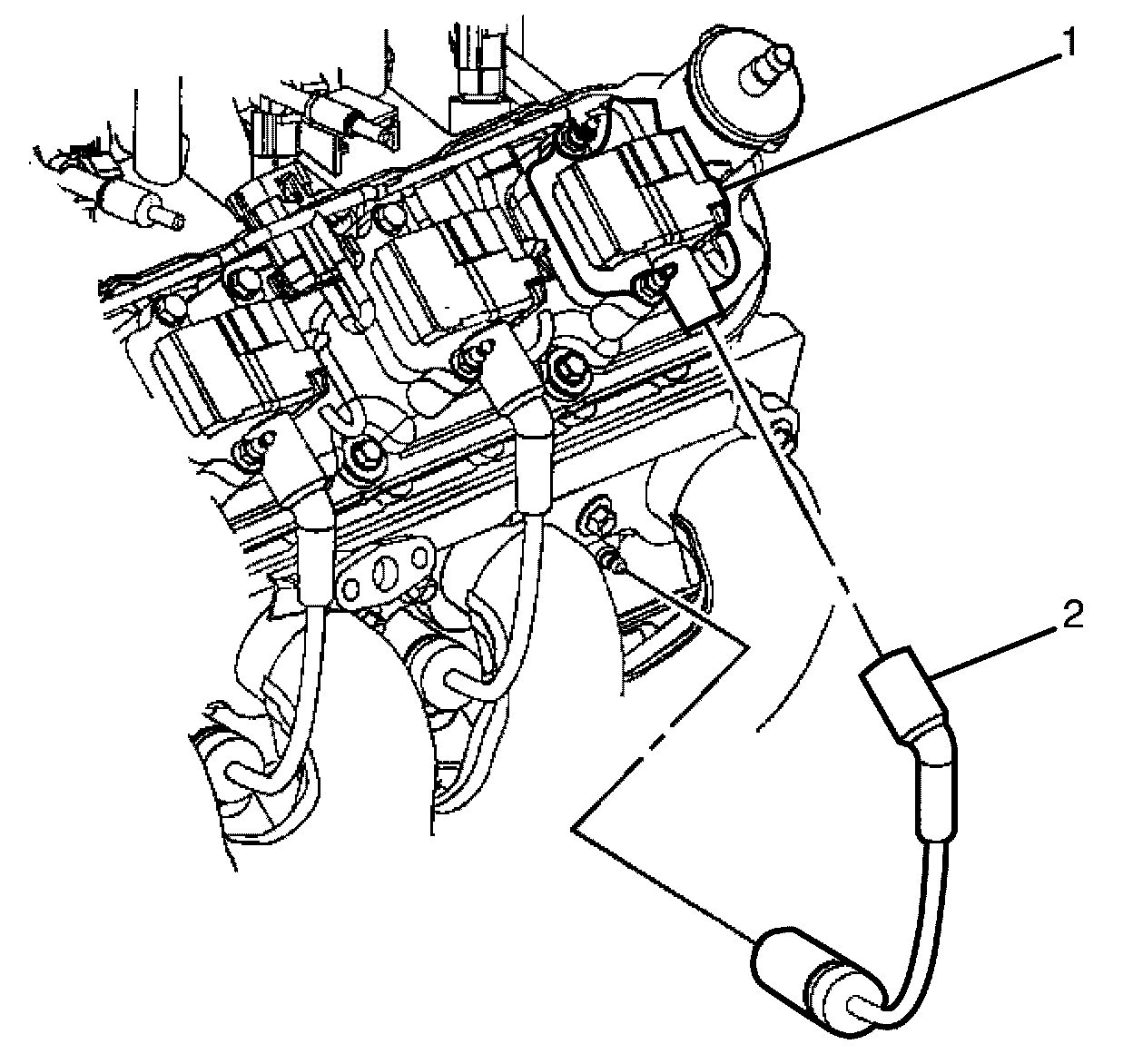3. Disconnect the spark plug wire from the ignition coil (1).