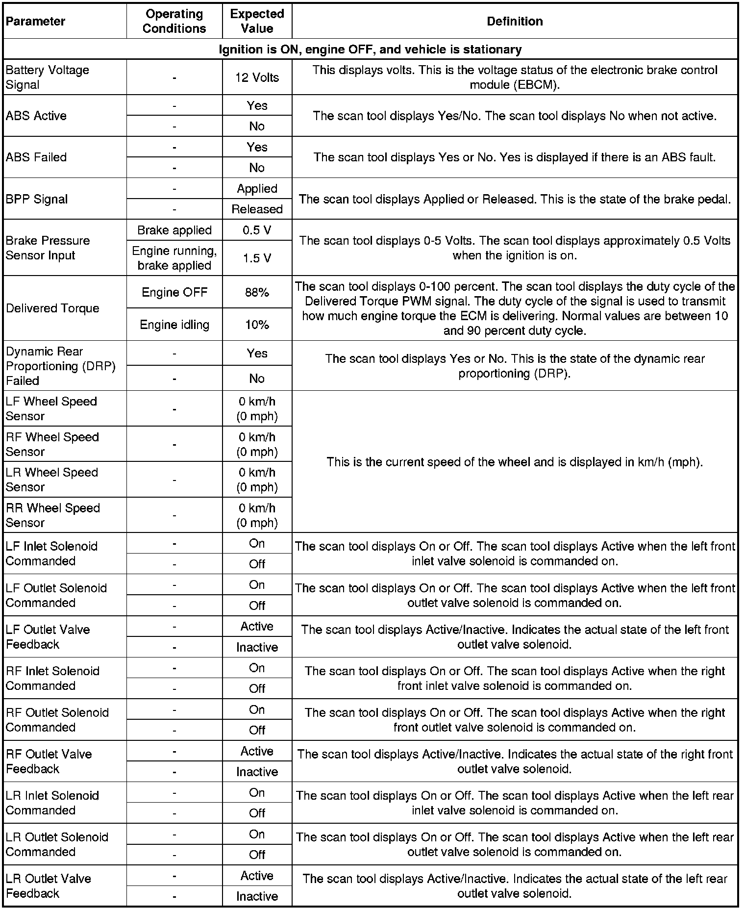 Scan Tool Data Parameters