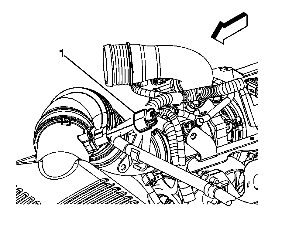 1. Disconnect the engine wiring harness electrical connector (1) from the mass air flow (MAF) sensor.