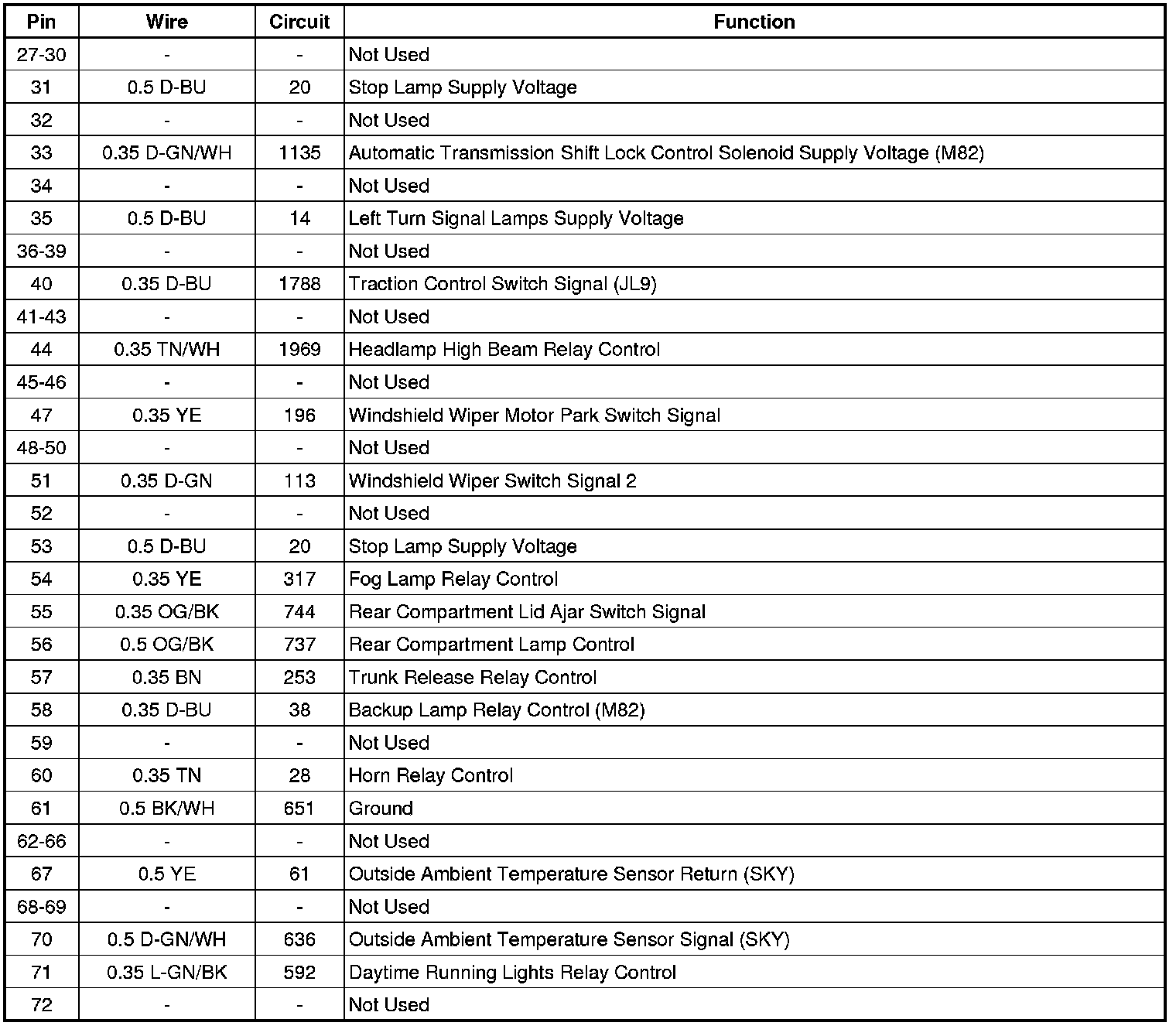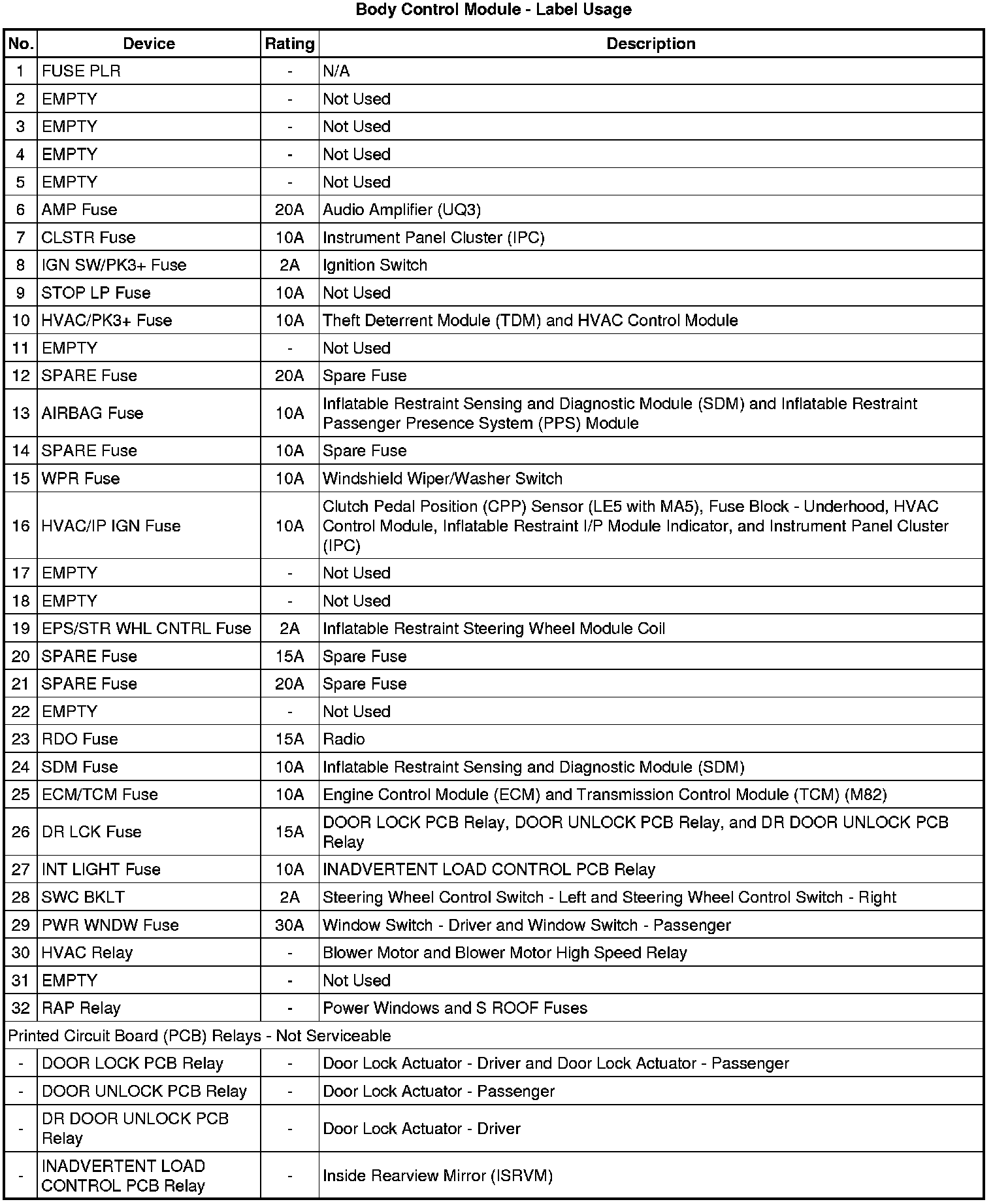 Home >> Pontiac >> 2009 >> Solstice L4-2.4L >> Repair and Diagnosis >> Diagrams >> Connector Views >> Fuse Block >> Body Control Module