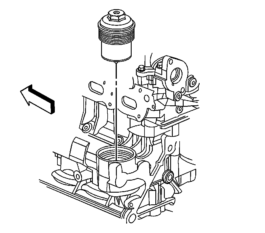 Caution: Over torquing the oil filter cap may cause damage to the oil filter cap resulting in an oil leak.