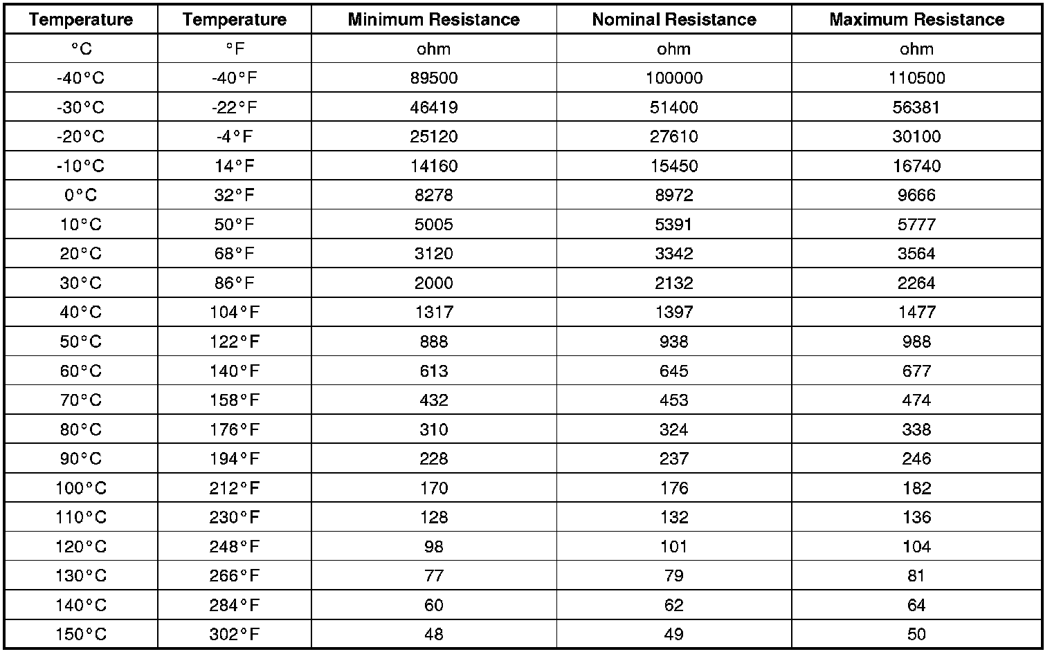Transmission Fluid Temperature Sensor Specifications
