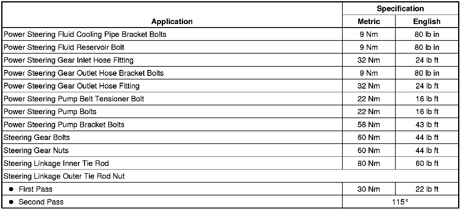 Fastener Tightening Specifications