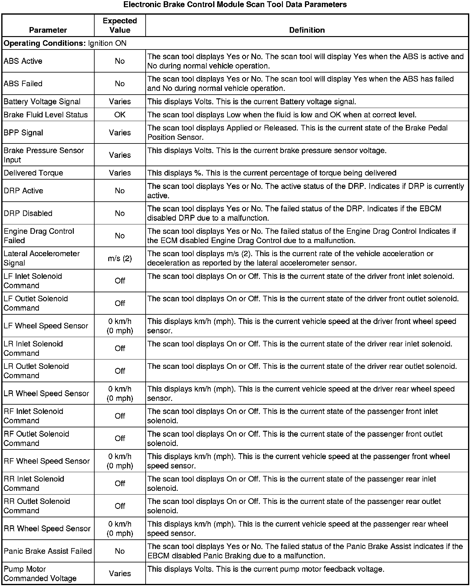 Electronic Brake Control Module Scan Tool Information