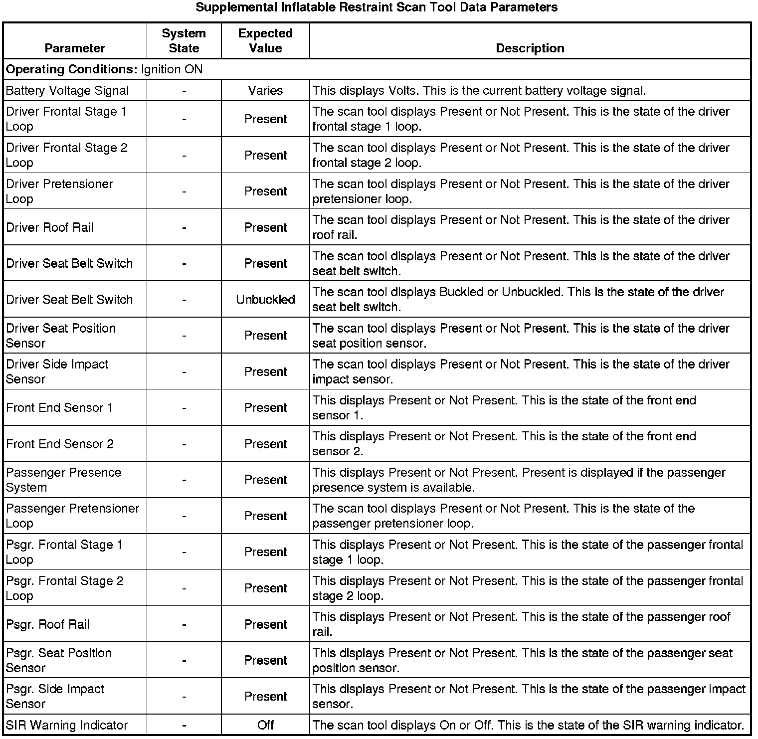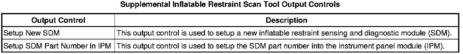 Inflatable Restraint Sensing and Diagnostic Module Scan Tool Information