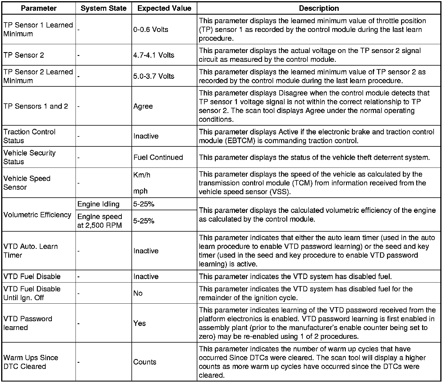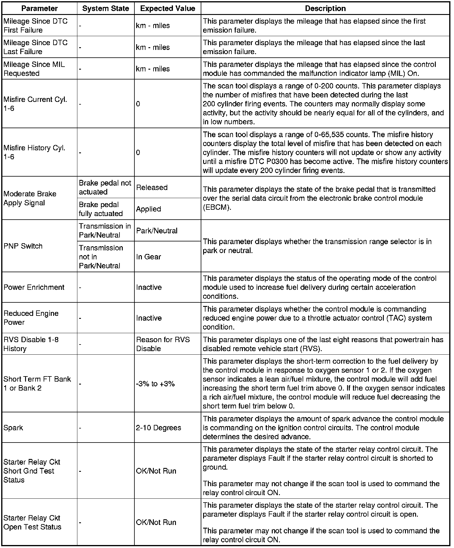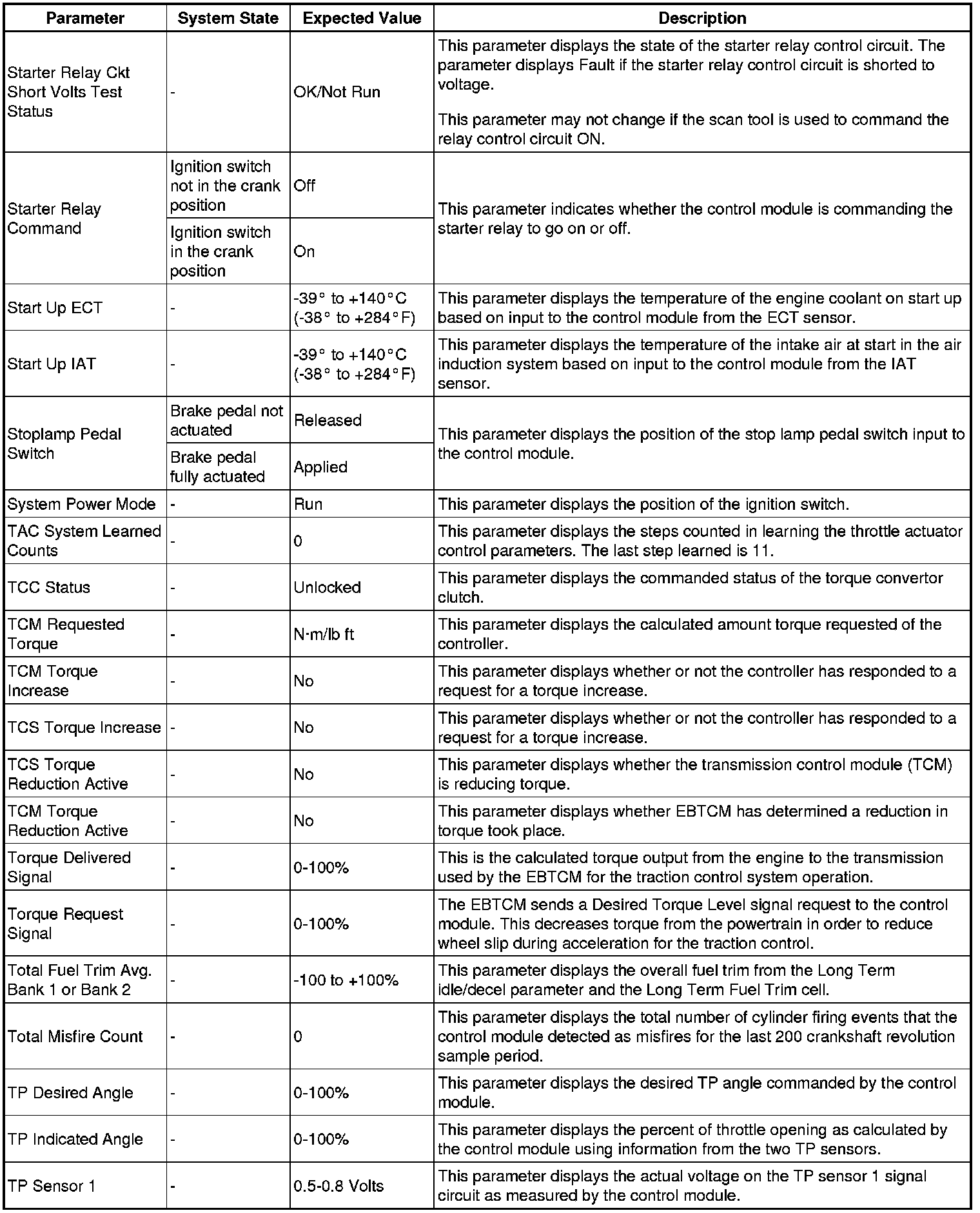 The Engine Control Module Scan Tool Data List contains all engine-related parameters that are available on the scan tool. The list is arranged in alphabetical order. A given parameter may appear in any one of the data lists, and in some cases may appear more than once, or in more than one data list in order to group certain related parameters together.