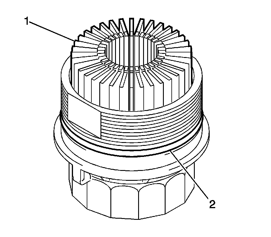 6. Remove oil filter element (1) and O-ring (2) from the oil filter cap.