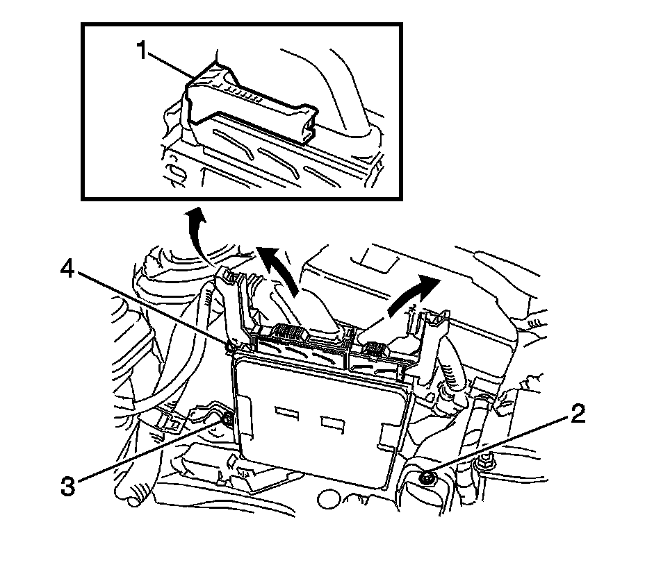 1. Install the 2 ECM brackets onto the ECM with the 4 screws (1, 2, 3, 4) and tighten to 3.2 Nm (28 lb in).