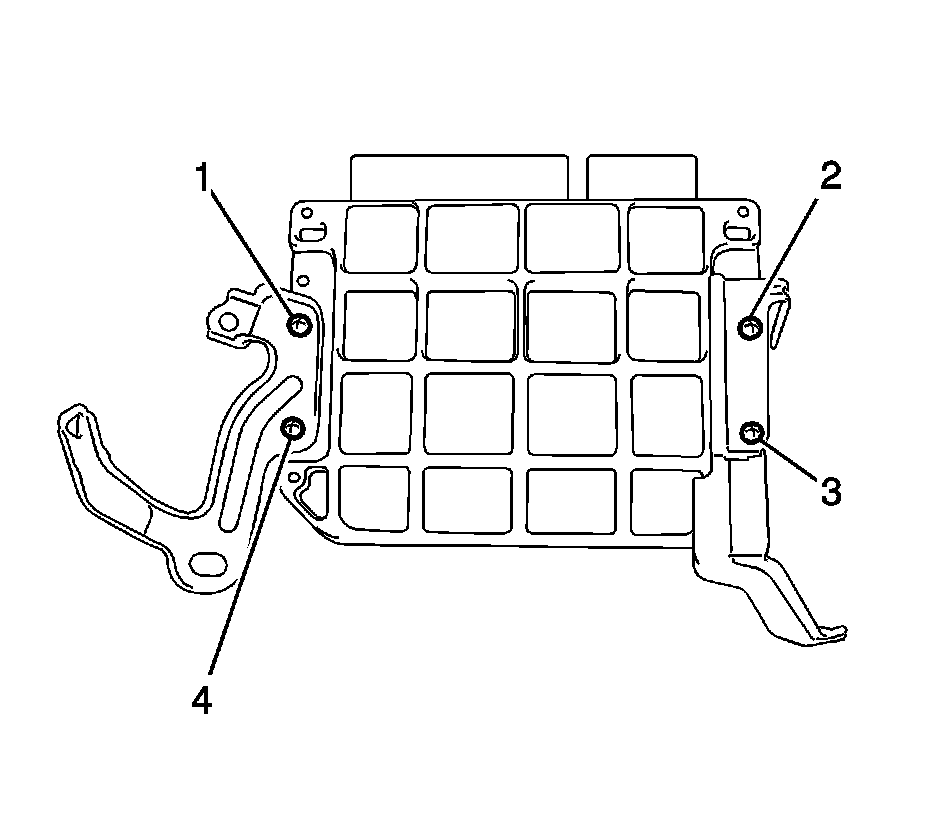 1. Install the 2 ECM brackets onto the ECM with the 4 screws (1, 2, 3, 4).