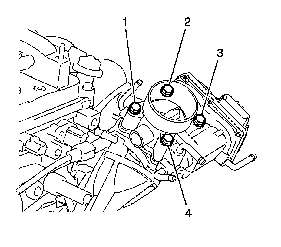 Throttle body assembly bolts (1, 2, 3, 4)