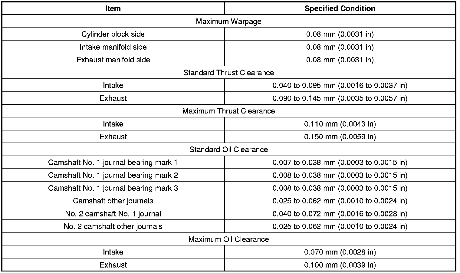 Engine General Specifications & Service Limits