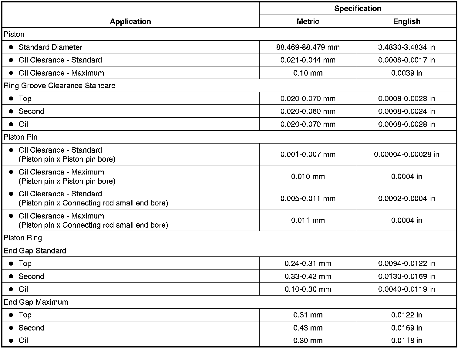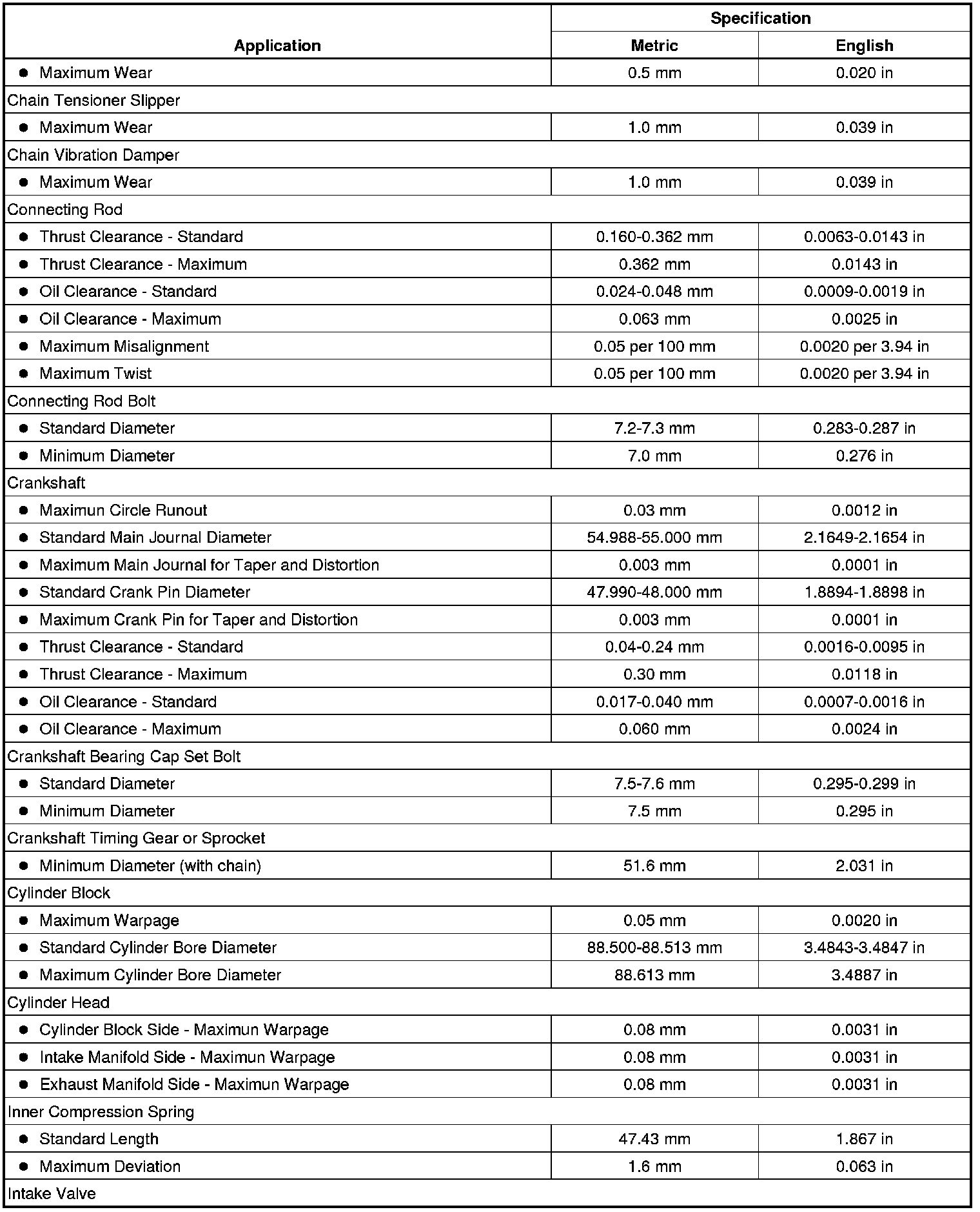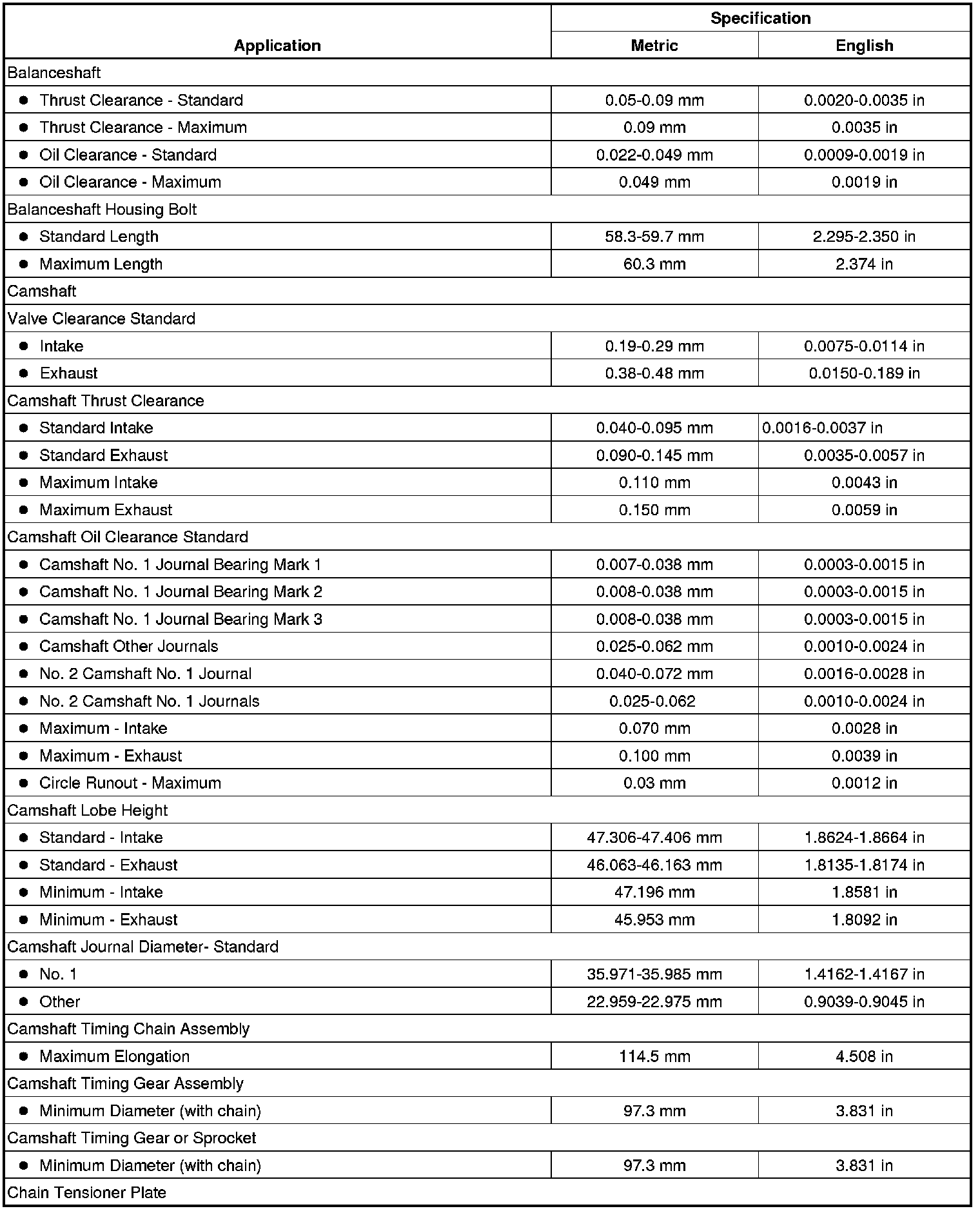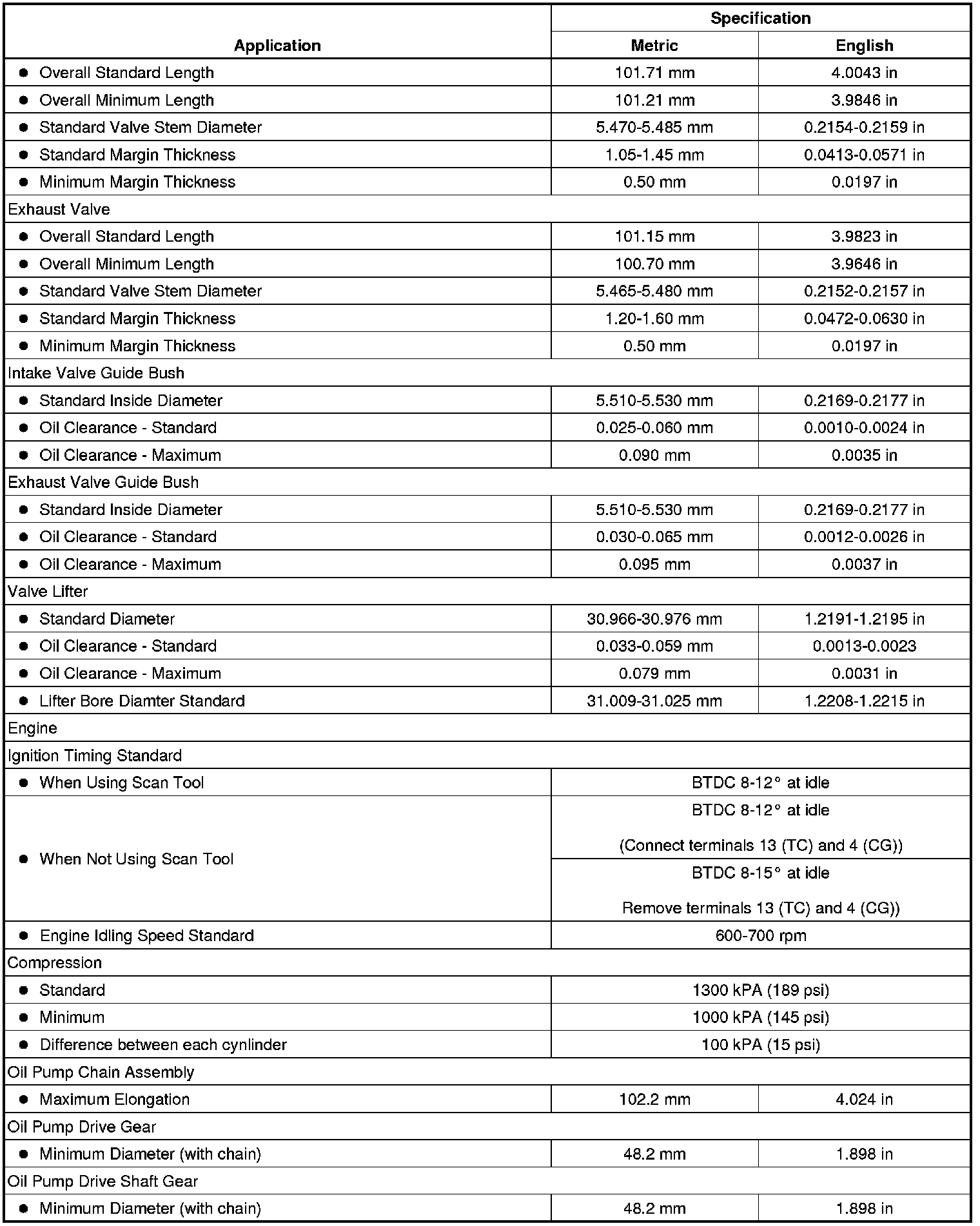 Engine Mechanical Specifications