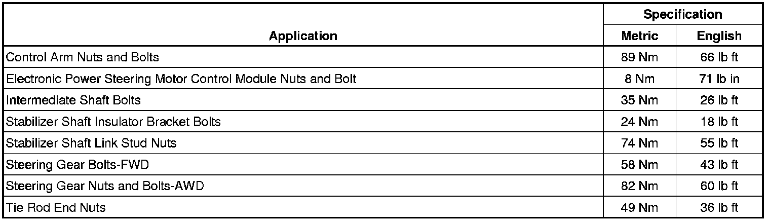 Fastener Tightening Specifications