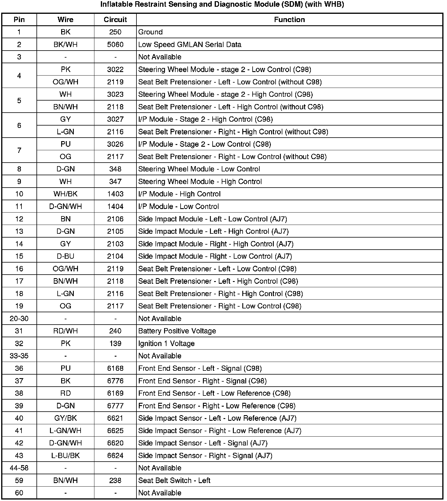 Inflatable Restraint Sensing and Diagnostic Module (SDM) (with WHB)