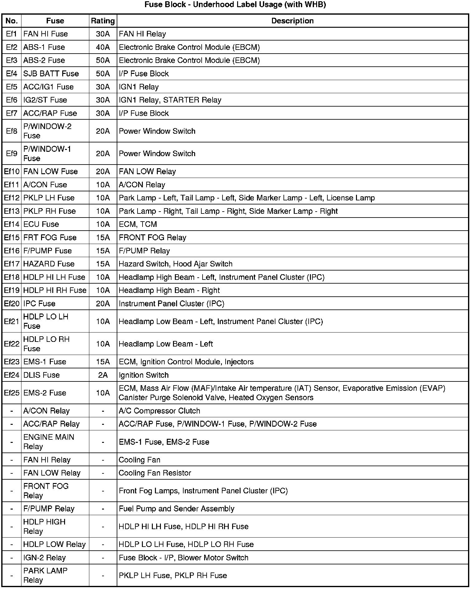 Fuse Block - Underhood Label (with WHB)