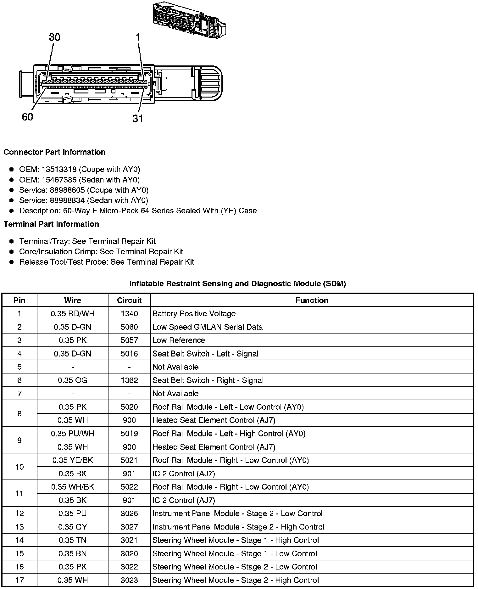 Inflatable Restraint Sensing and Diagnostic Module (SDM)