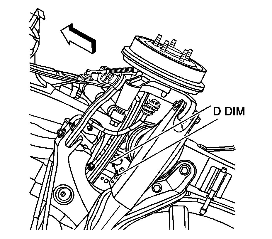 The D height dimension measurement determines the proper rear end ride height. There is no adjustment procedure. Repair may require replacement of suspension components.