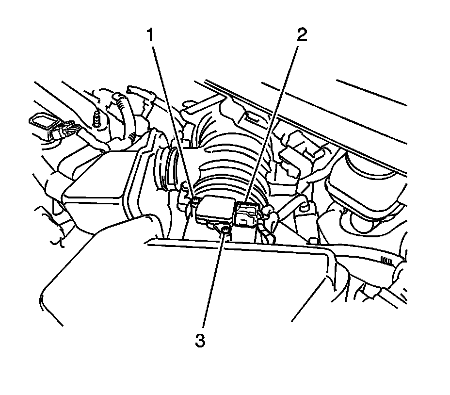 1. Install the mass air flow meter with the 2 screws (1, 3) and tighten to 1.0 Nm (9 lb in).