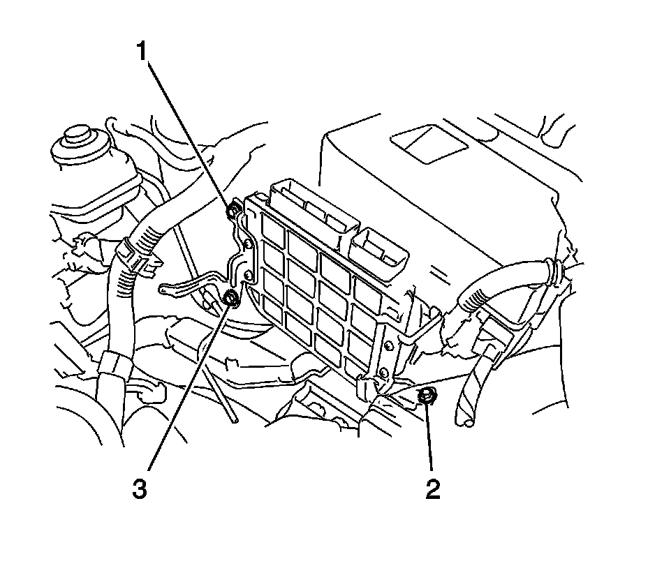7. Remove the 3 bolts (1, 2, 3) and the ECM.