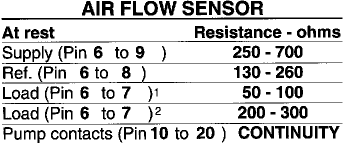 1 Flap on air flow sensor closed or air flow sensor plate at rest position. Resistance increases as flap or plate opens.