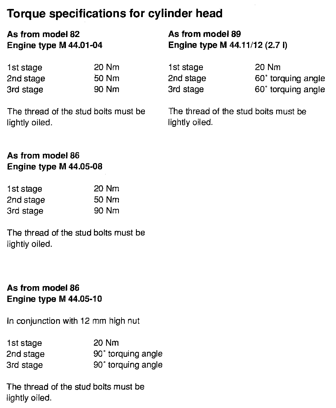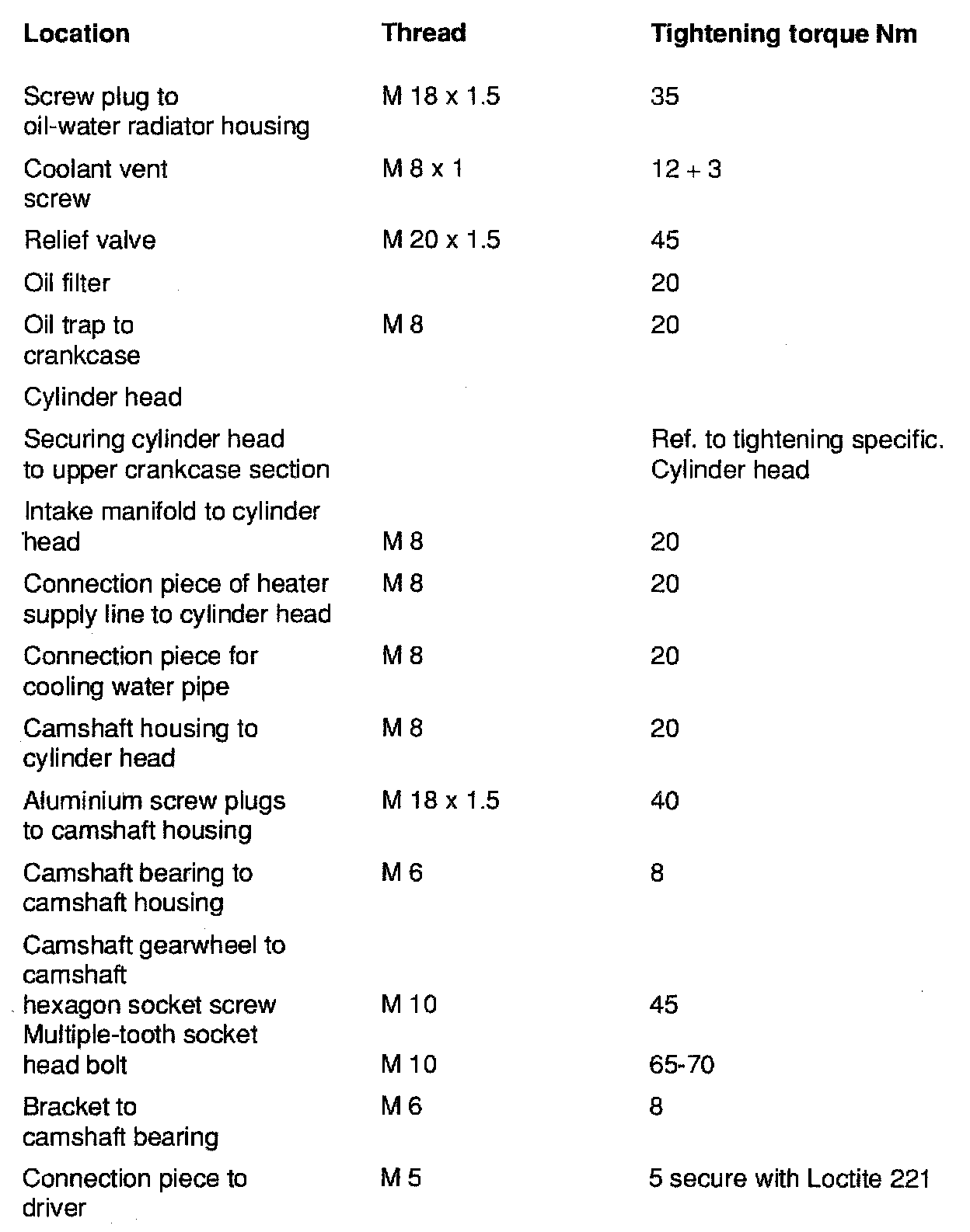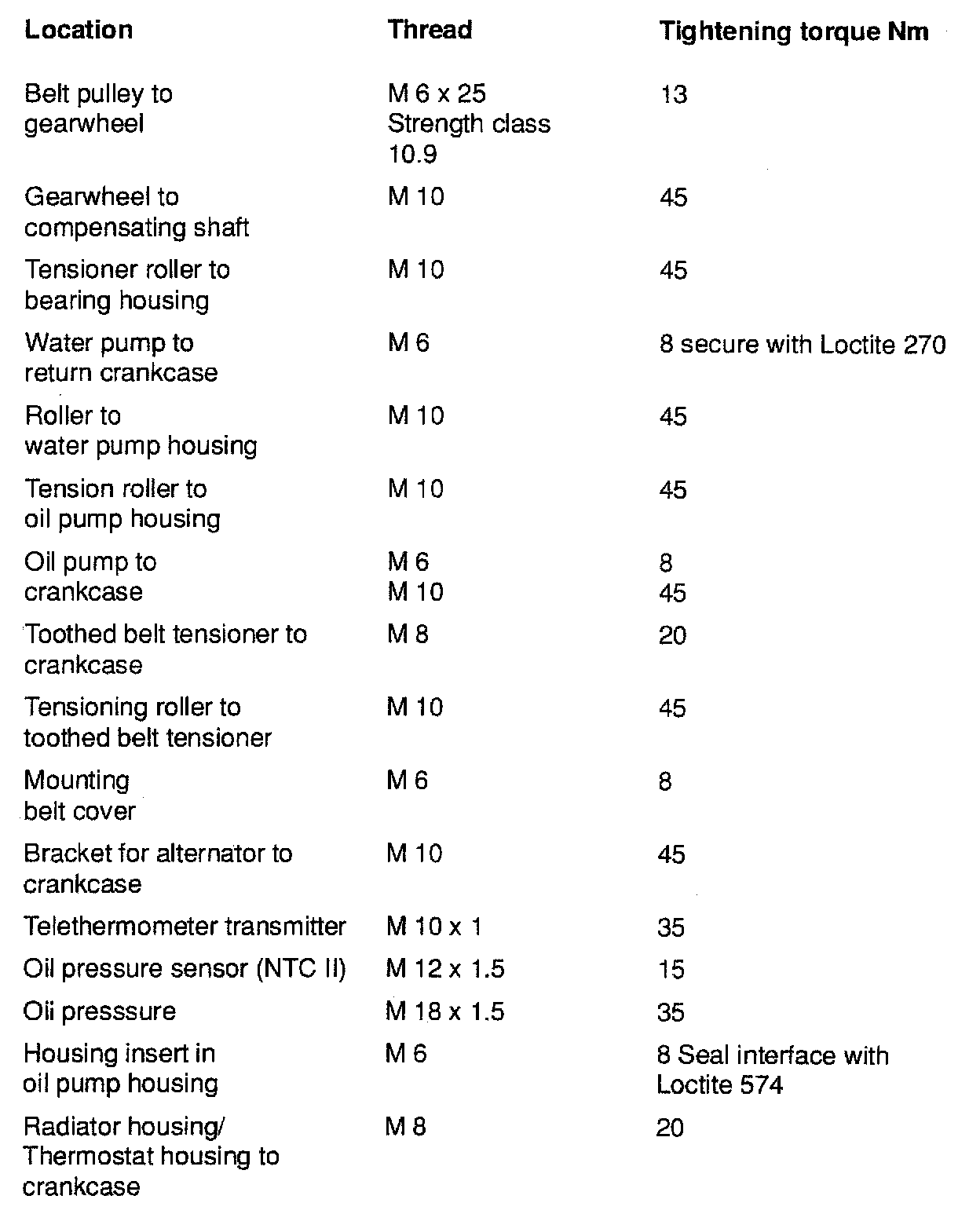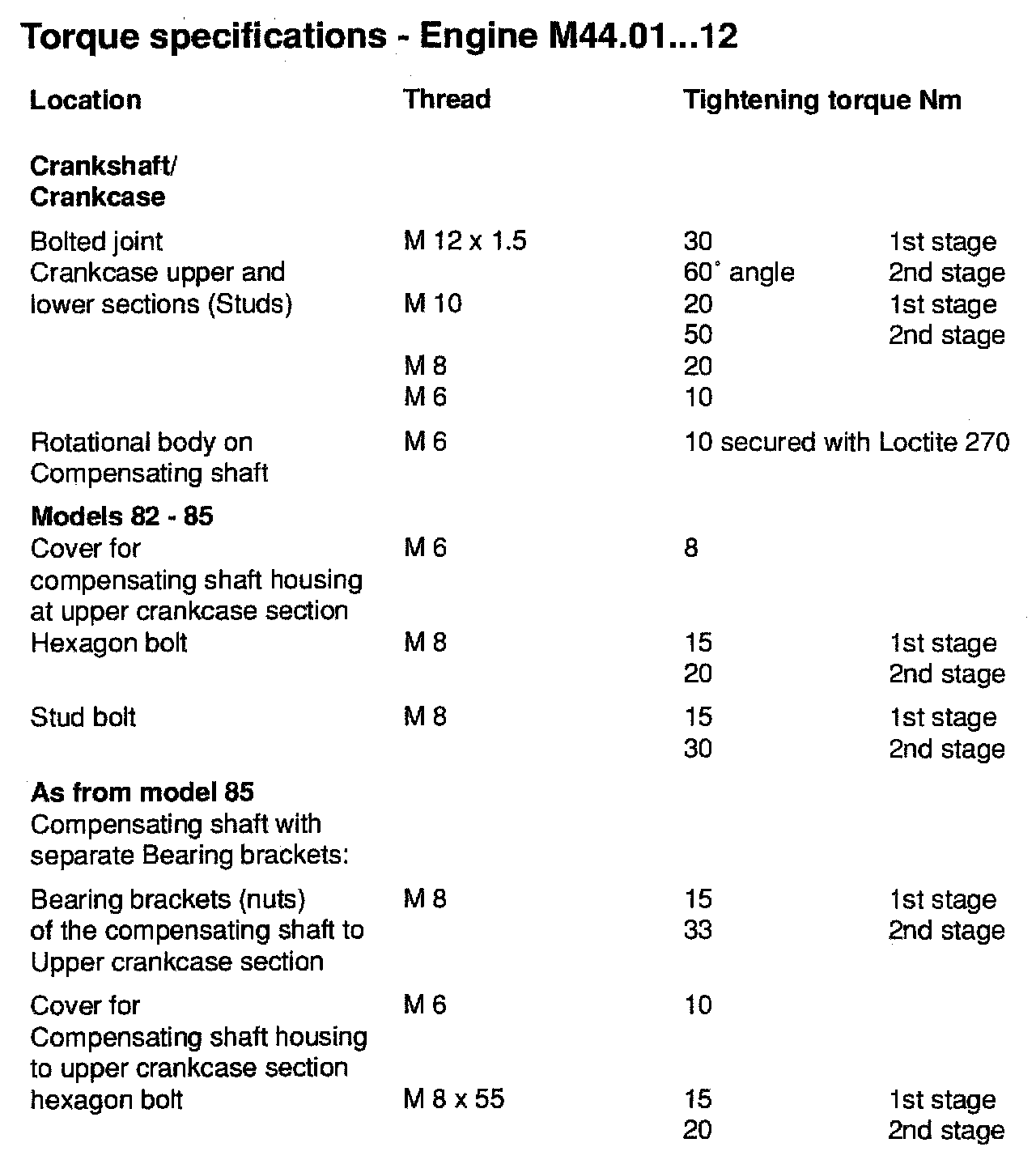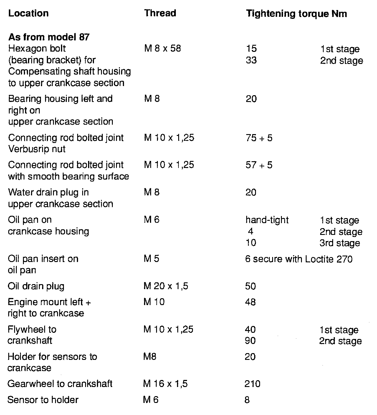 TIGHTENING SPECIFICATIONS