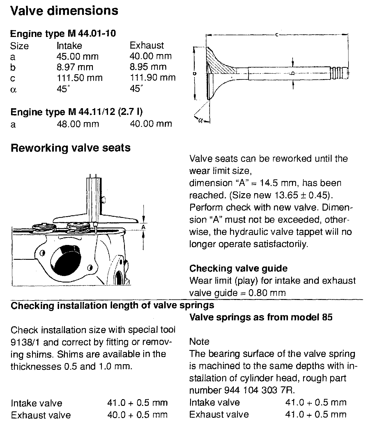 VALVE SPECIFICATIONS