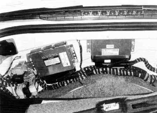 The DME control unit is installed in the rear luggage compartment against the panel between the luggage compartment and the engine compartment (direction of travel: left).