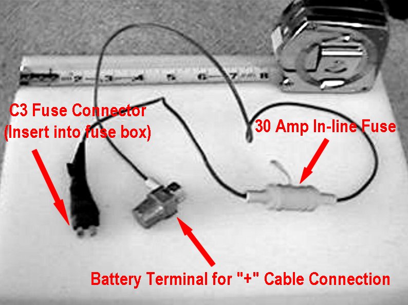 7. Connect the positive lead of the battery or battery booster pack to positive "+" tail of fuse jumper.