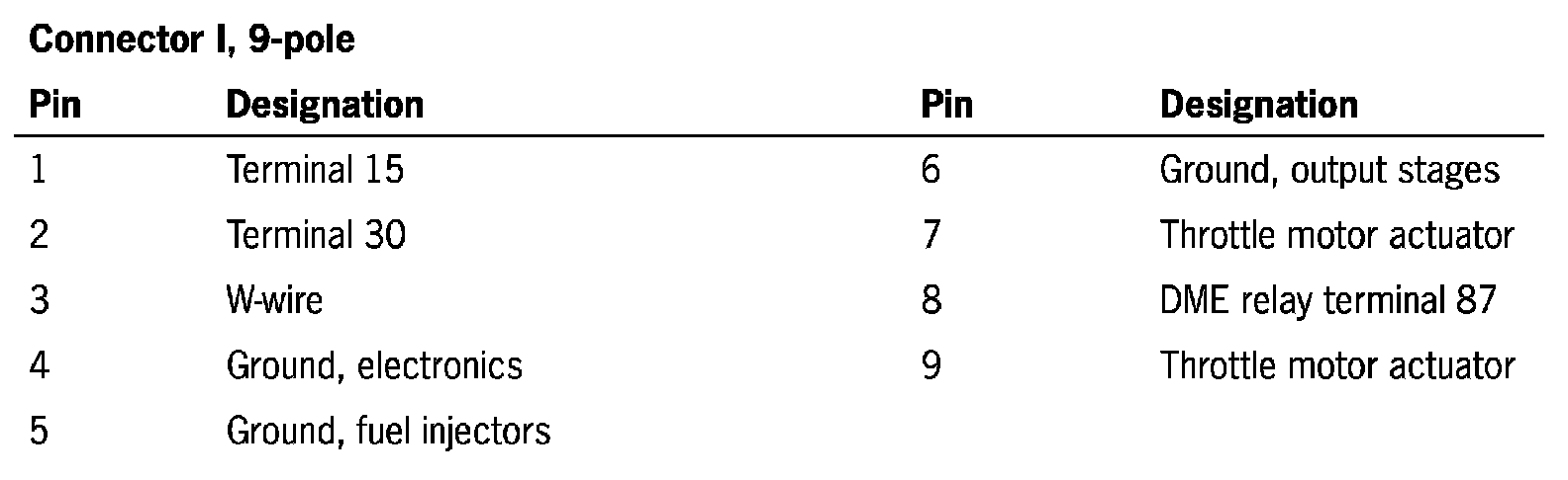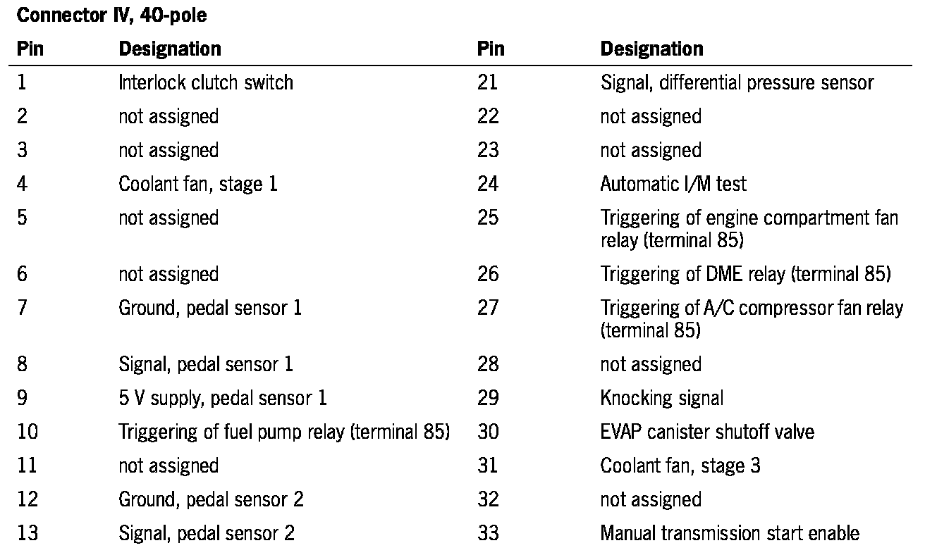 DME control module connector assignment