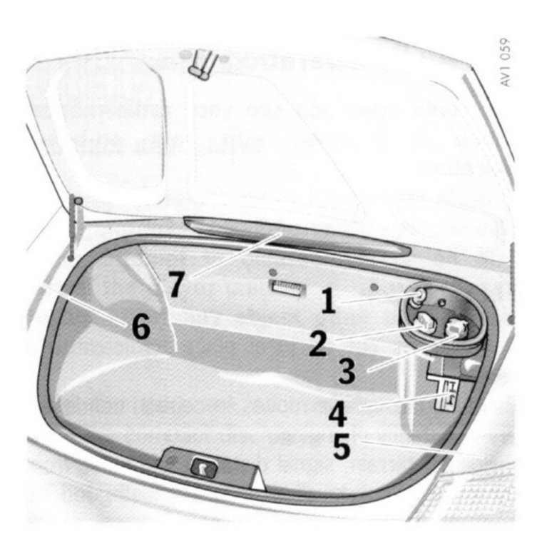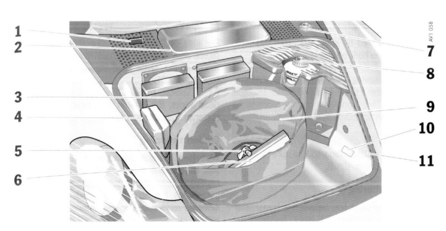 9 Tool kit and jack are located behind the spare wheel (spare wheel must be removed)